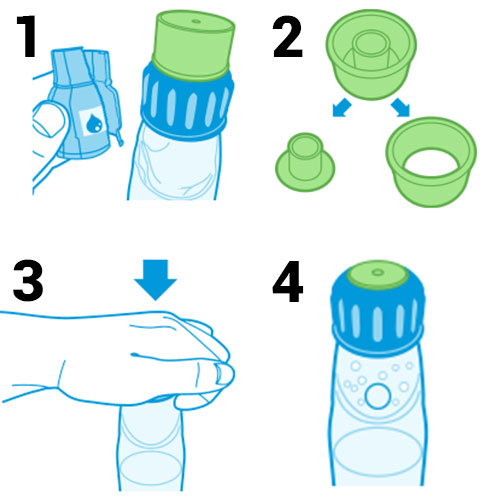 - Hold åbneren nede i et par sekunder for at sikre at sodavanden ikke skummer over.